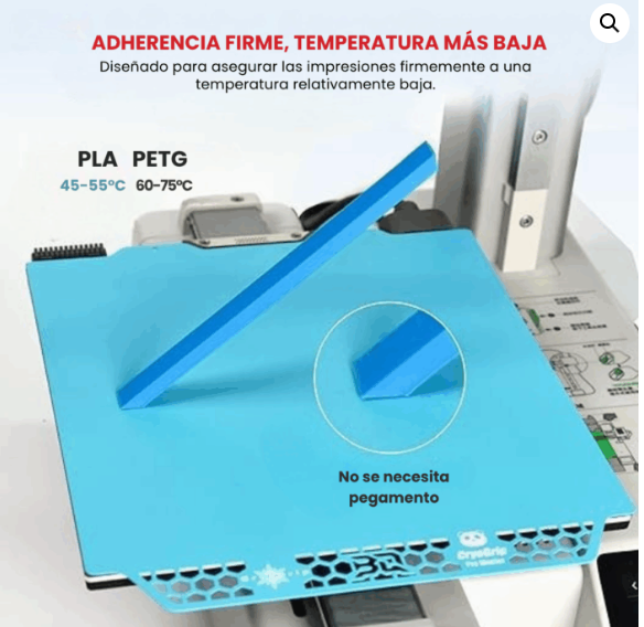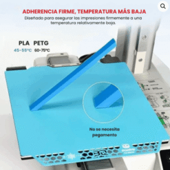 La placa CryoGrip Pro Glacier 184×184 mm está diseñada para ofrecer una solución de alta adherencia sin necesidad de calefacción en impresoras Bambu Lab A1 Mini. Su superficie de textura fina y recubrimiento multicapa permite una fijación efectiva de filamentos como PLA, PETG, ABS y nailon, incluso imprimiendo a temperatura ambiente. Fabricada en acero elástico con base magnética, esta placa es resistente, flexible y fácil de usar. Gracias a su estructura de múltiples capas, incluyendo una superficie oleofóbica autorreparable, mantiene sus propiedades de adhesión por largo tiempo con solo una limpieza con agua o alcohol isopropílico. Su diseño facilita la extracción de las piezas impresas sin herramientas, simplemente flexionando la placa una vez que se enfría. Ideal para usuarios que buscan una base confiable, duradera y compatible con una amplia gama de materiales, especialmente en entornos donde se requiere eficiencia energética y facilidad de uso. Es especialmente recomendada para impresiones de alta calidad sin warping y con máxima estabilidad.