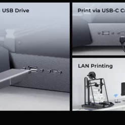 CR-M4 se puede usar a través de una unidad USB, cable USB-C, cable RJ45 y Wi-Fi. Si hay una conexión LAN, los usuarios pueden imprimir a través de Creality Print. Con una conexión a Internet existente, la aplicación Creality Cloud se puede utilizar para imprimir y controlar la impresión en curso.