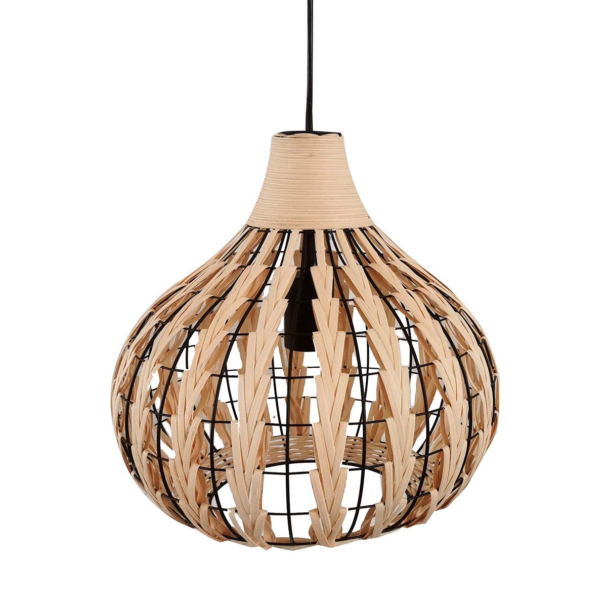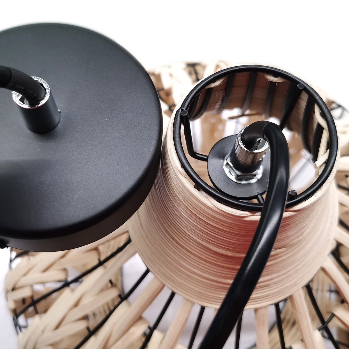 Luminaria lampara colgante de ratán y hierro negro ø 34 x 32 cm