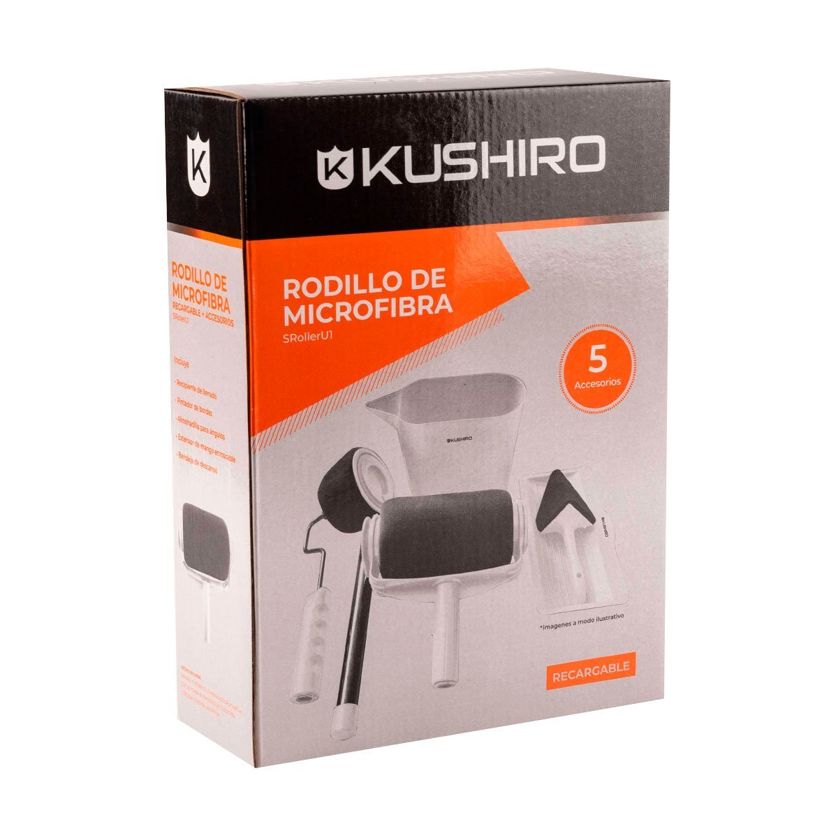 Incluye: bandeja de descanso, almohadilla para ángulos, pintador de bordes, recipiente de llenado y extensor de mango enroscable