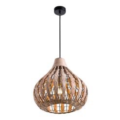 Luminaria lampara colgante de ratán y hierro negro ø 34 x 32 cm